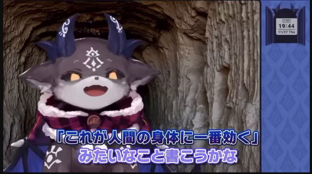 - 特徴:お酒と契約が大好きな、小さくて可愛い悪魔。可愛らしい見た目とは裏腹に、時折見せる毒舌やホラーテイストな配信が人気。