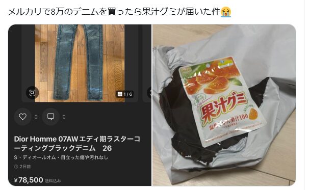 2025年4月、フリマアプリ「メルカリ」で起きた衝撃的な事件をご存知でしょうか?服飾関係を志す大学生が約8万円もの高級デニムを購入したにもかかわらず、届いたのは果汁グミ(オレンジ味)だったという驚きの出来事が話題になりました。この「メルカリでデニムを注文したらグミが届いた事件」は、SNS上で爆発的に拡散し、多くのユーザーに衝撃を与えました。